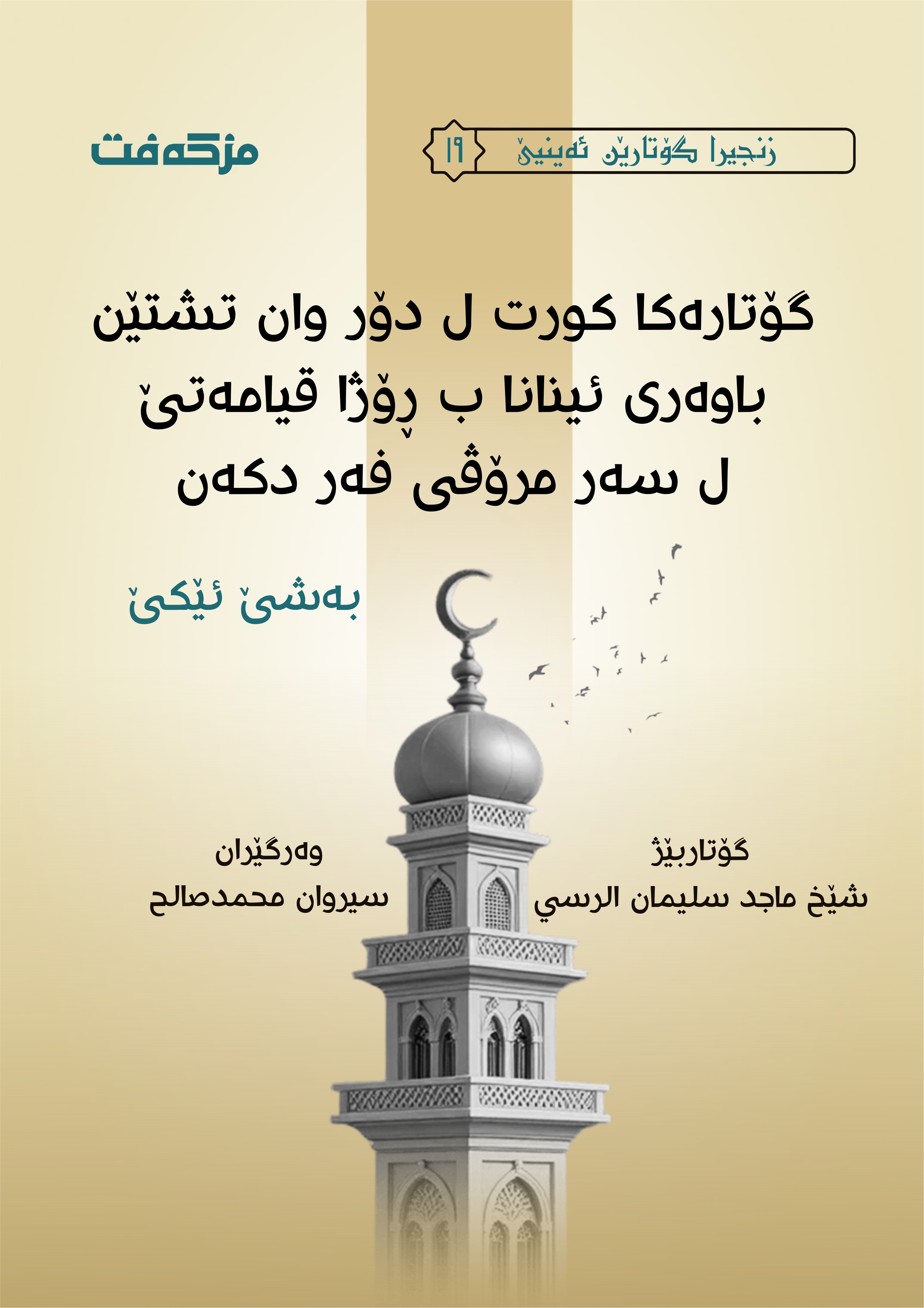 ڤێجا ئهوێن ب گۆتن وكريار باوهرى ب خودێ ئيناى، وخۆ ب وێ ڕۆناهییێ ڤه گرتى يا مه بۆ ئينايه خوارێ، پاشى ئهو ژ قهنجى ودلۆڤانییا خۆ دێ وان كهته د بهحهشتێ دا، ودێ بهرێ وان دهته ڕێكا ڕاست يا سهرى دكێشته مێرگێن بهحهشتێ.